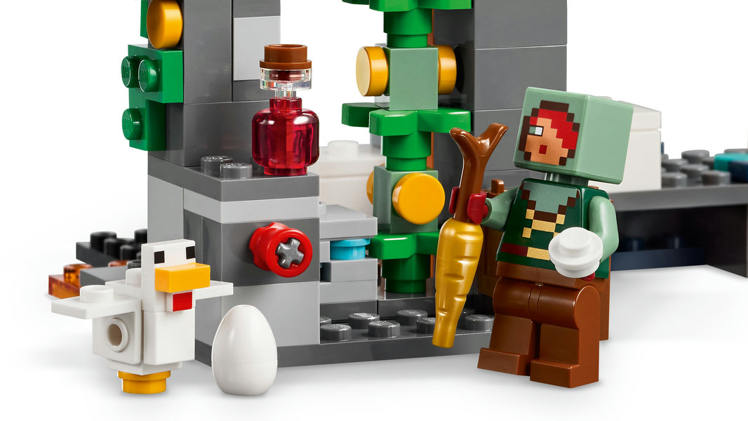 - Minecraft® speelgoedfiguren – deze LEGO® set bevat een minifiguur van de Minecraft Stille Opzichter, een Minecraft kip en een grote, bouwbare figuur van de Minecraft Opzichter met een verstelbaar hoofd, armen en benen